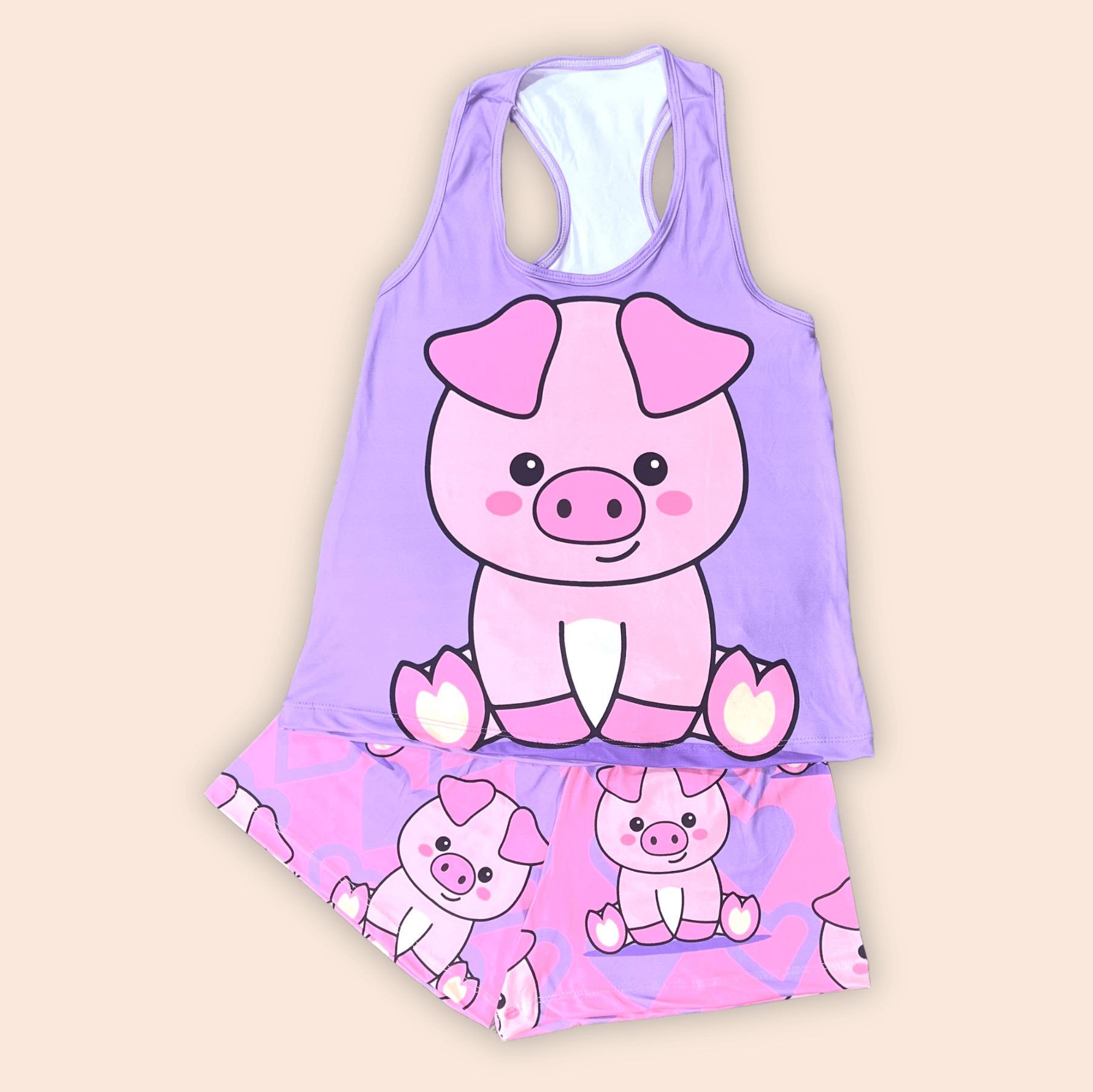 Un toque de ternura para tu descanso 💜🐷. Esta pijama con diseño de Cerdito es perfecta para quienes aman la suavidad y los estampados adorables. Su blusa de tirantes y short ligero te ofrecen frescura y confort para dormir plácidamente. ¡Hazla tuya y disfruta del descanso más cute