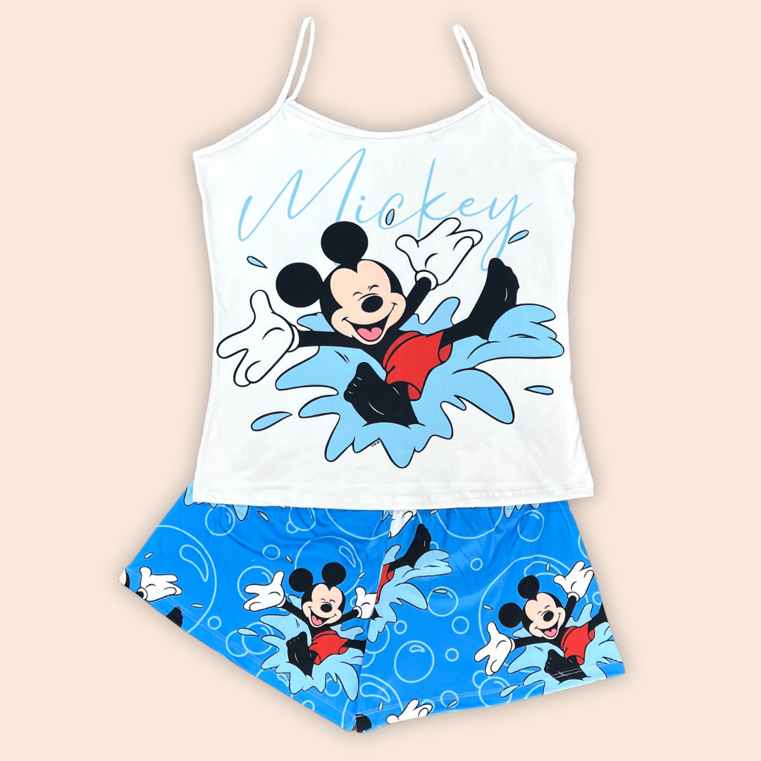 La pijama Mickey Splash para dama en talla plus es sinónimo de frescura y diversión. Con un diseño alegre de Mickey disfrutando del agua, esta pijama ligera y transpirable es ideal para noches de confort total. Su ajuste cómodo realza tu silueta.