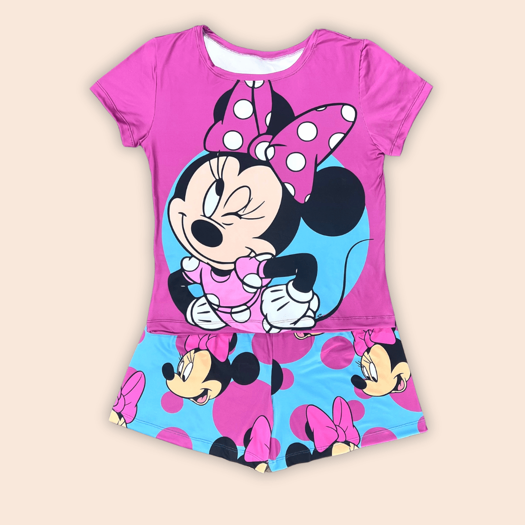 El encanto clásico de Minnie Mouse en una pijama de short para dama talla plus. Comodidad y diseño divertido para tus noches.